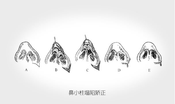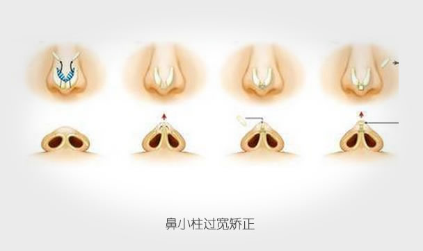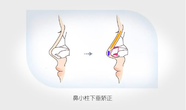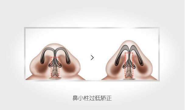 鼻小柱整形,针对不同的情况通过不同的手术方法在鼻孔、鼻小柱周围进行矫正。如果鼻小柱过低,则采取自体组织或者替代非自体材料垫起来,如果过高则需要去除一部分。