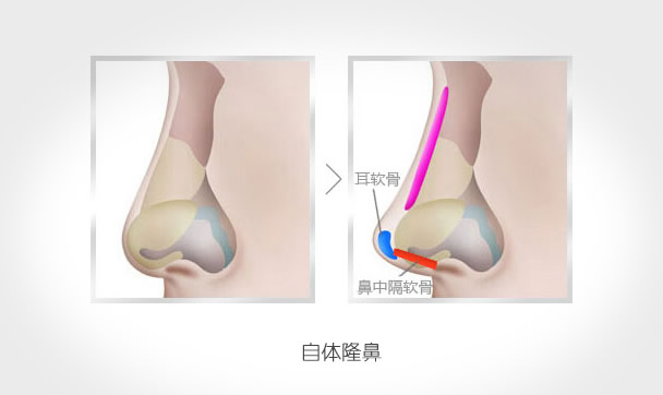 自体软骨隆鼻就是用自身软骨组织来做填充材料,一般可取自耳软骨,鼻中隔软骨和肋软骨,其中耳软骨居多。