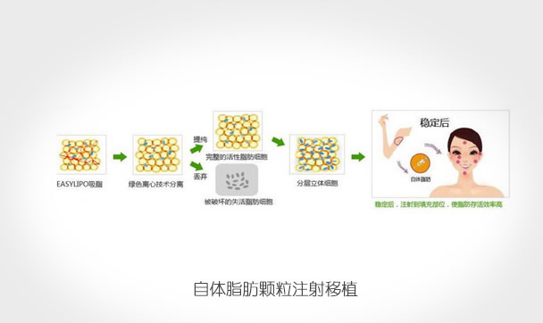 2、自体脂肪丰面颊:将身体中提取的自体脂肪注射进颊部凹陷处,饱满面部。