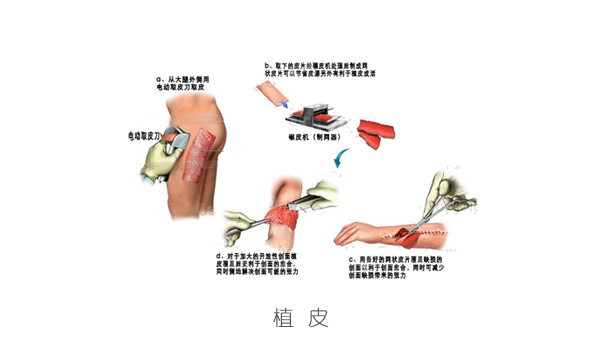 一、植皮后,植皮部位必须固定不动5-7天,避免碰触或摩擦,以防止植入之皮松脱,约7-10天可拔出皮钉.