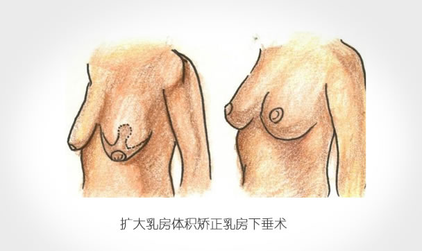 3、扩大乳房体积矫正乳房下垂术:本术既可以矫正松垂又能扩大乳房体积,适应于乳房松垂且希望乳房丰满者。