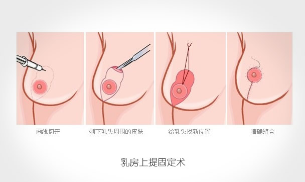 乳头的水平位置是在乳房下皱襞之下即是所谓的乳房下垂,矫正方法有乳房真皮固定术、乳房上提固定术和乳房上提固定术。