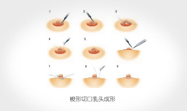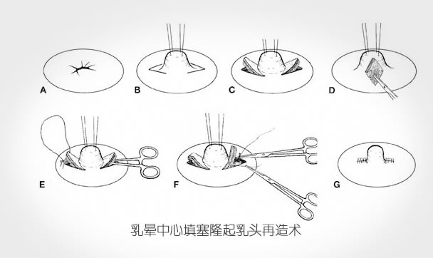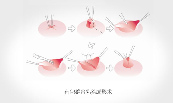 手术方法主要有荷包缝合乳头成形术、梭形切口乳头成形、多V乳头成形术、乳晕四角星切口乳头内陷矫正术、乳晕中心填塞隆起乳头再造术