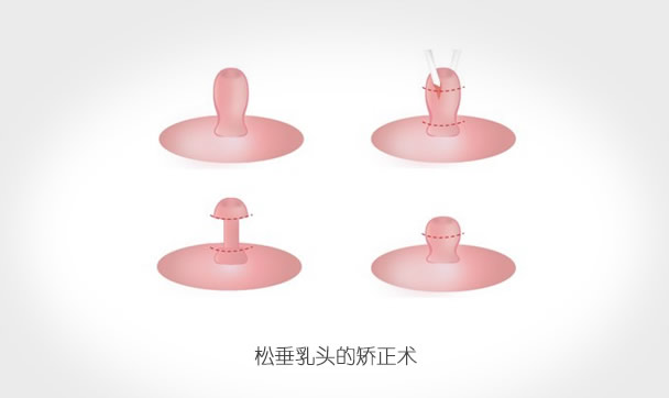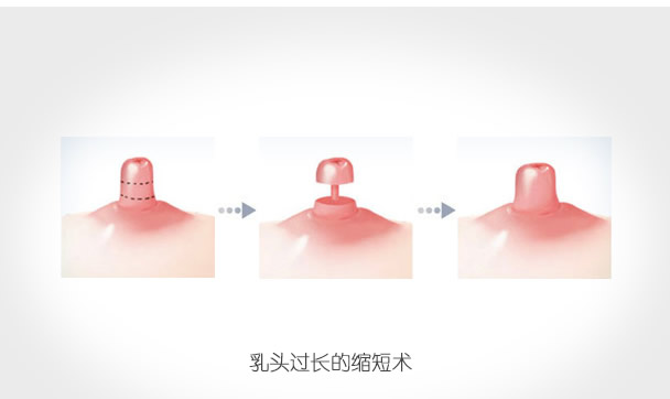 乳头缩小手术大致包括乳头过长的缩短术,乳头过粗的缩窄术,松垂乳头的矫正术以及乳头形态不圆滑、两侧不对称的矫正等,手术局麻下进行。切口在乳头基底圆周上或在乳头圆柱体的去除过多的乳头组织,然后缝合,术后仅纱布覆盖7~8天后拆线。
