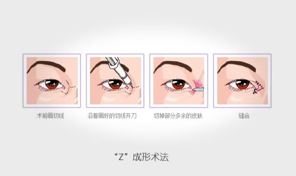 内眦赘皮矫正的目的是去除内眼角的皮肤波褶,显露泪湖和增大眼裂。一般在行重睑术的同时行内眦开大术,轻者可直接剪开赘皮后缝合皮肤切口即可,较重者应行“z”字改形术或其他皮瓣法修复。