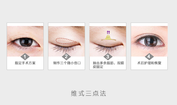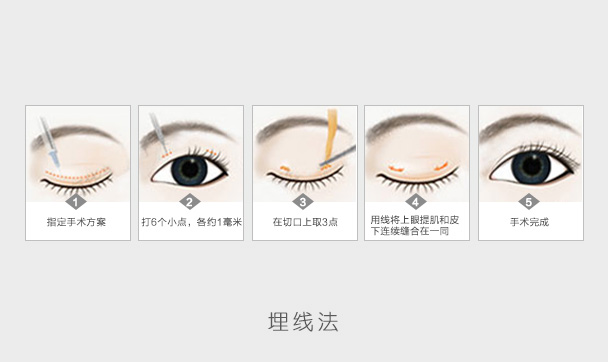 根据您的脸型、眼部基础条件、眉眼间距及三庭五眼比例等因素,量身设计方案,增大眼的轮廓,增添眼的立体感,使眼睛显得较大,并使睫毛上翘,给人以生动,传神之感。手术方法主要有切开法、埋线法和三点法等。